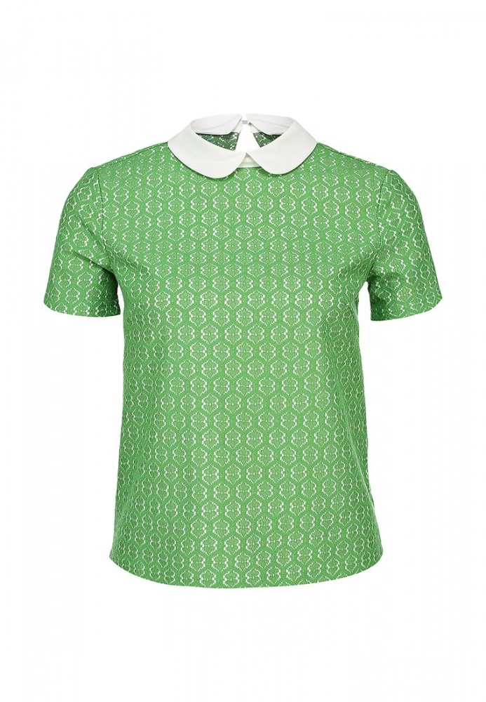 Стильная блуза Incity выполнена из плотного хлопкового материала зеленого цвета с кружевной фактурой. Детали: прямой крой, белый отложной воротник, сзади застежка на пуговицу.