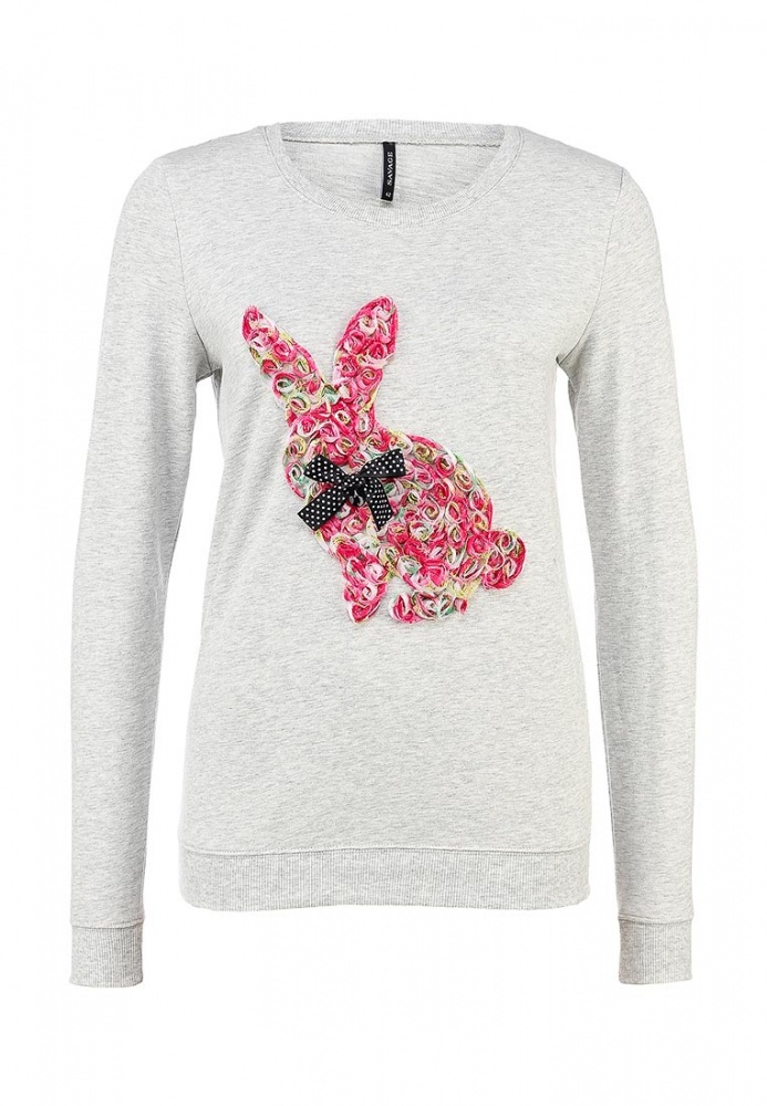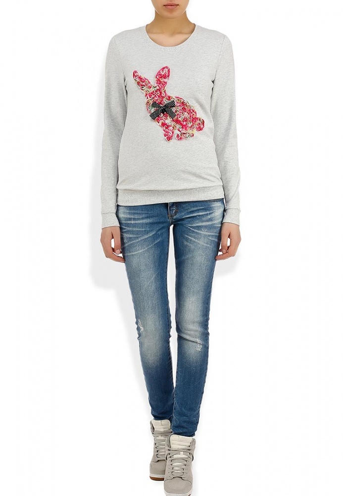 Джемпер Savage из мягкого на ощупь серого меланжевого хлопка. Передняя часть украшена яркой нашивкой в форме кролика. Низ и манжеты на эластичной резинке. Детали: прямой крой, круглый вырез, длинный рукав.