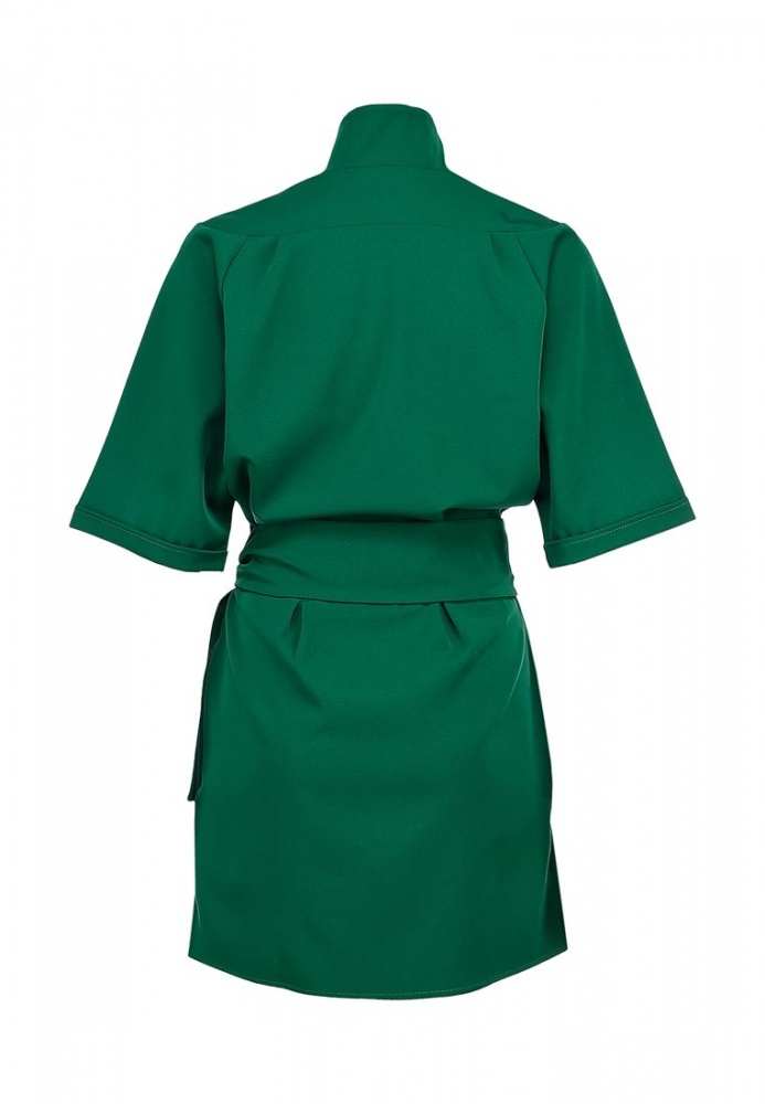 Платье Love & Light решено в зеленом цвете. Модель выполнена из плотного эластичного материала. Детали: сложный крой лифа, потайная застежка на пуговицах, два кармана в боковых швах. К модели прилагается пояс.