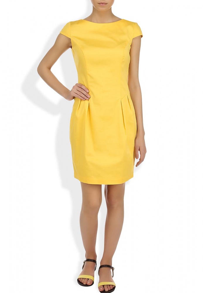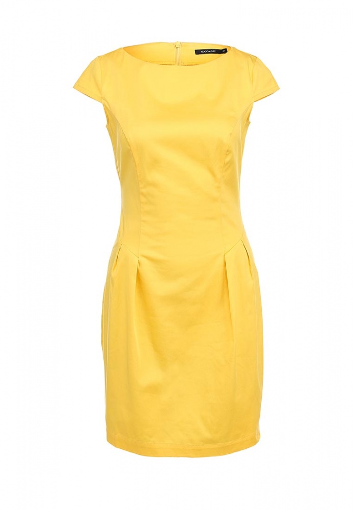 Платье насыщенно-желтого цвета от Savage создано из плотного хлопкового трикотажа. Детали: приталенный крой, вытачки, потайная молния на спинке, лаконичный дизайн.